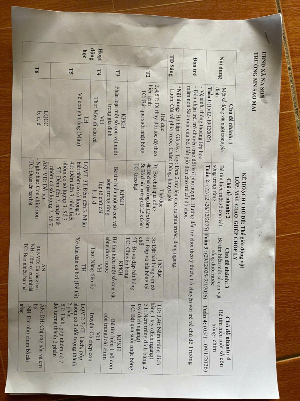 Kế hoạch tuần chủ đề: Thế giới động vật lớp MGG 3-4-5T Chóp Ly