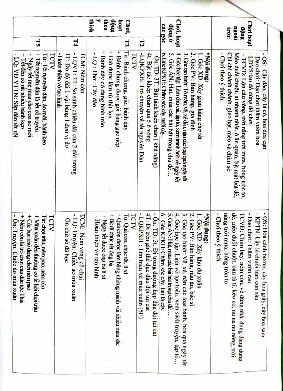 BẢNG THỰC ĐƠN ĂN CỦA HỌC SINH MẪU GIÁO - NHÀ TRẺ